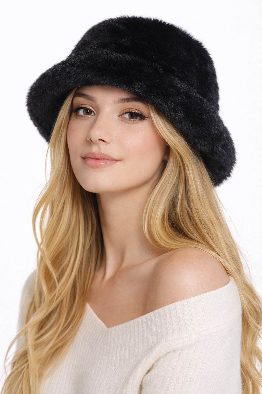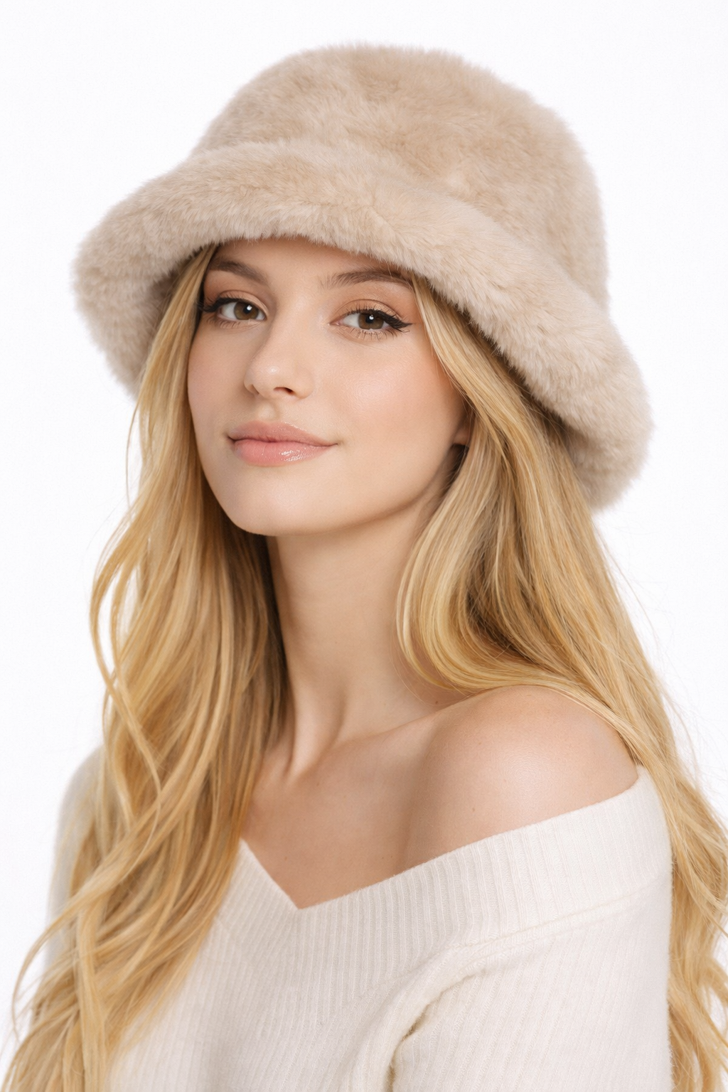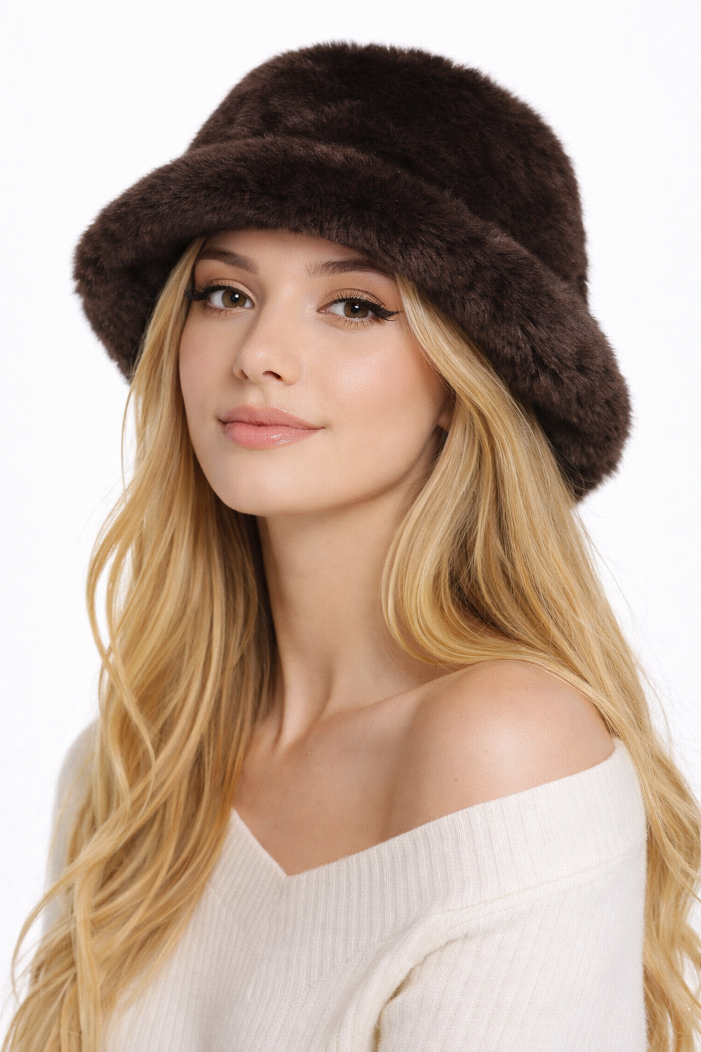 Γυναικείο Γούνινο Bucket Καπέλο από Τεχνητή Γούνα Τύπου Κουνελιού – One Size