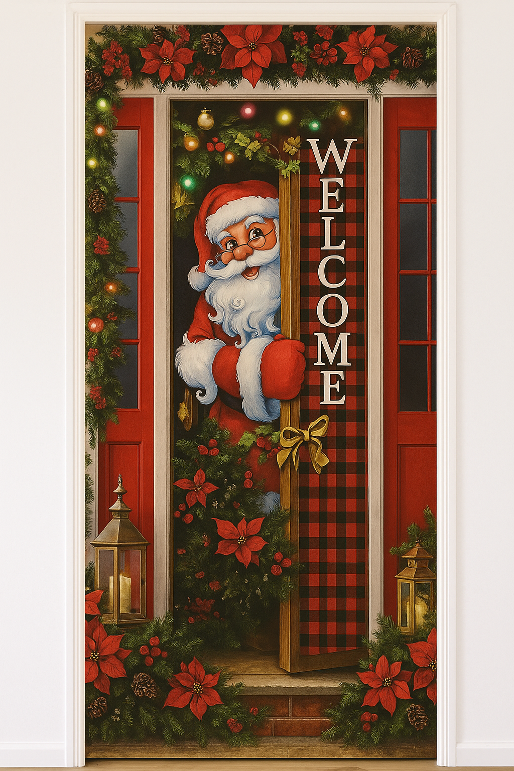 Με αυτό το ελαστικό κάλυμμα πόρτας με τον Άγιο Βασίλη, θα υποδεχτείς τους καλεσμένους σου με το πιο χαρούμενο “Welcome”! Ιδανικό για χριστουγεννιάτικη διακόσμηση τόσο σε σπίτι όσο και σε επαγγελματικό χώρο.
