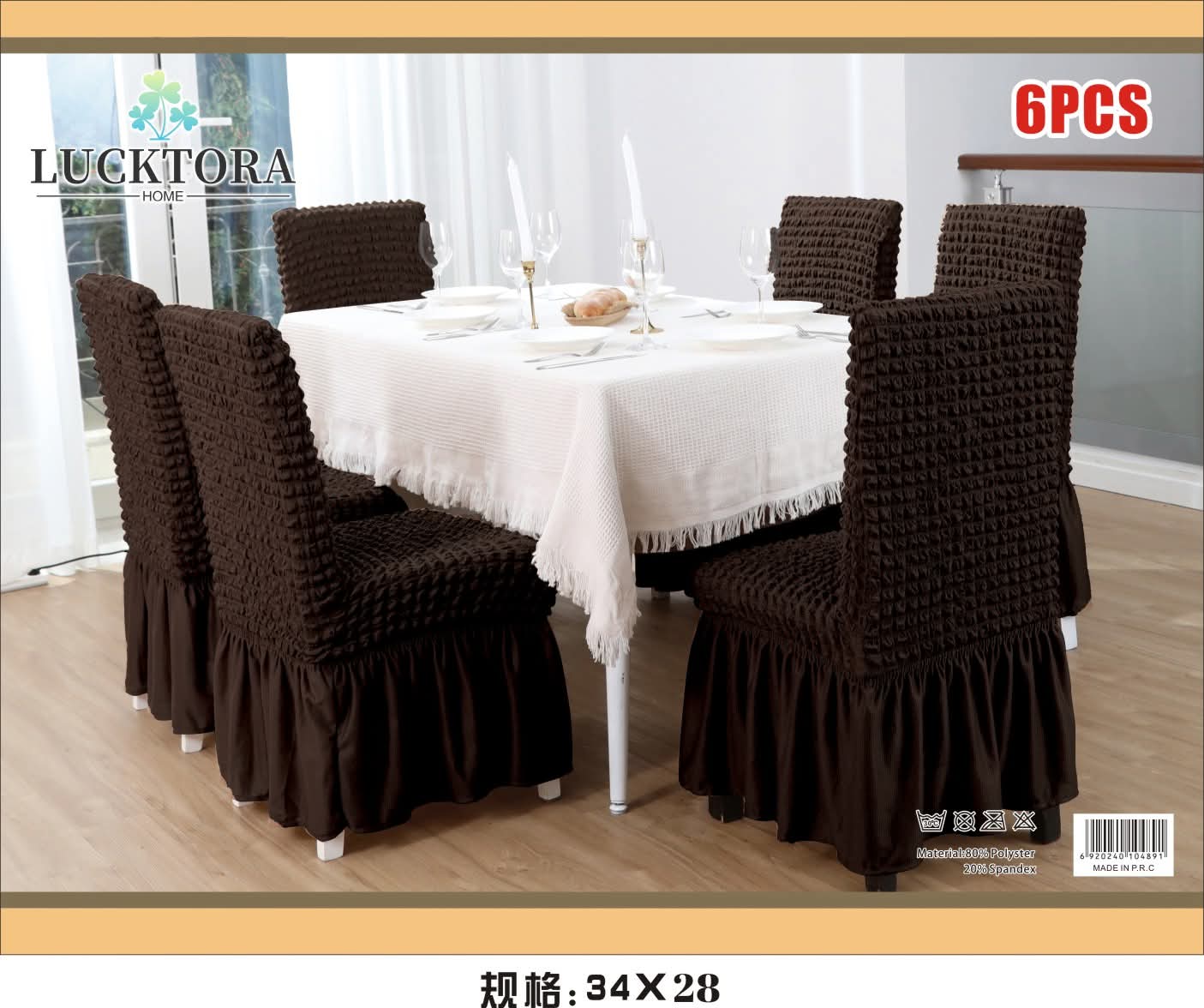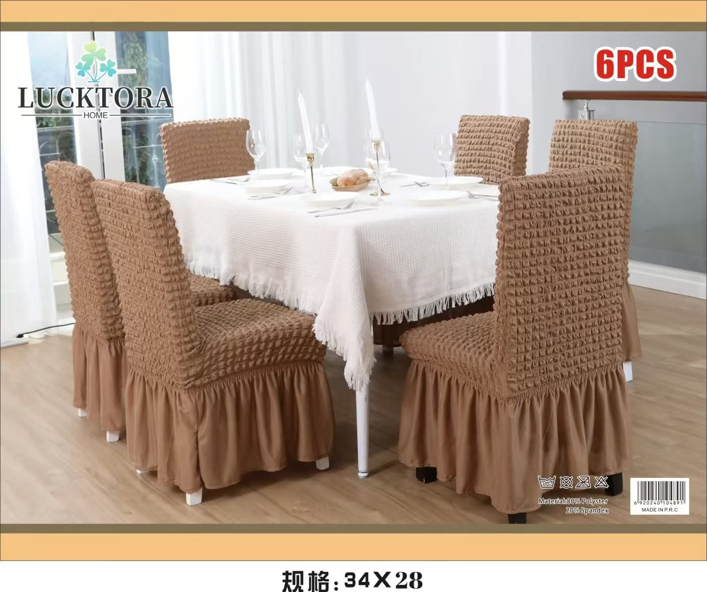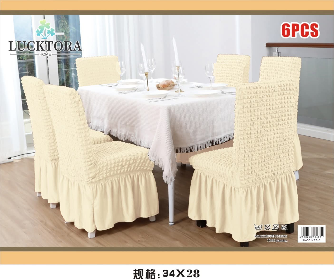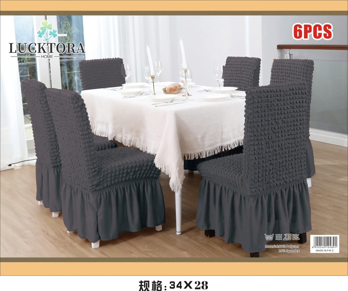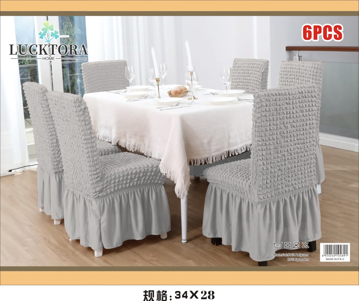 Σετ 6 τεμαχίων ελαστικών καλυμμάτων καρέκλας. Κατασκευασμένα από υψηλής ποιότητας ύφασμα (90% Polyester, 10% Spandex), προσφέρουν τέλεια εφαρμογή και προστασία στις καρέκλες σας. Ιδανικά για καθημερινή χρήση, εύκολα στο πλύσιμο και ανανεώνουν το χώρο σας με στυλ.