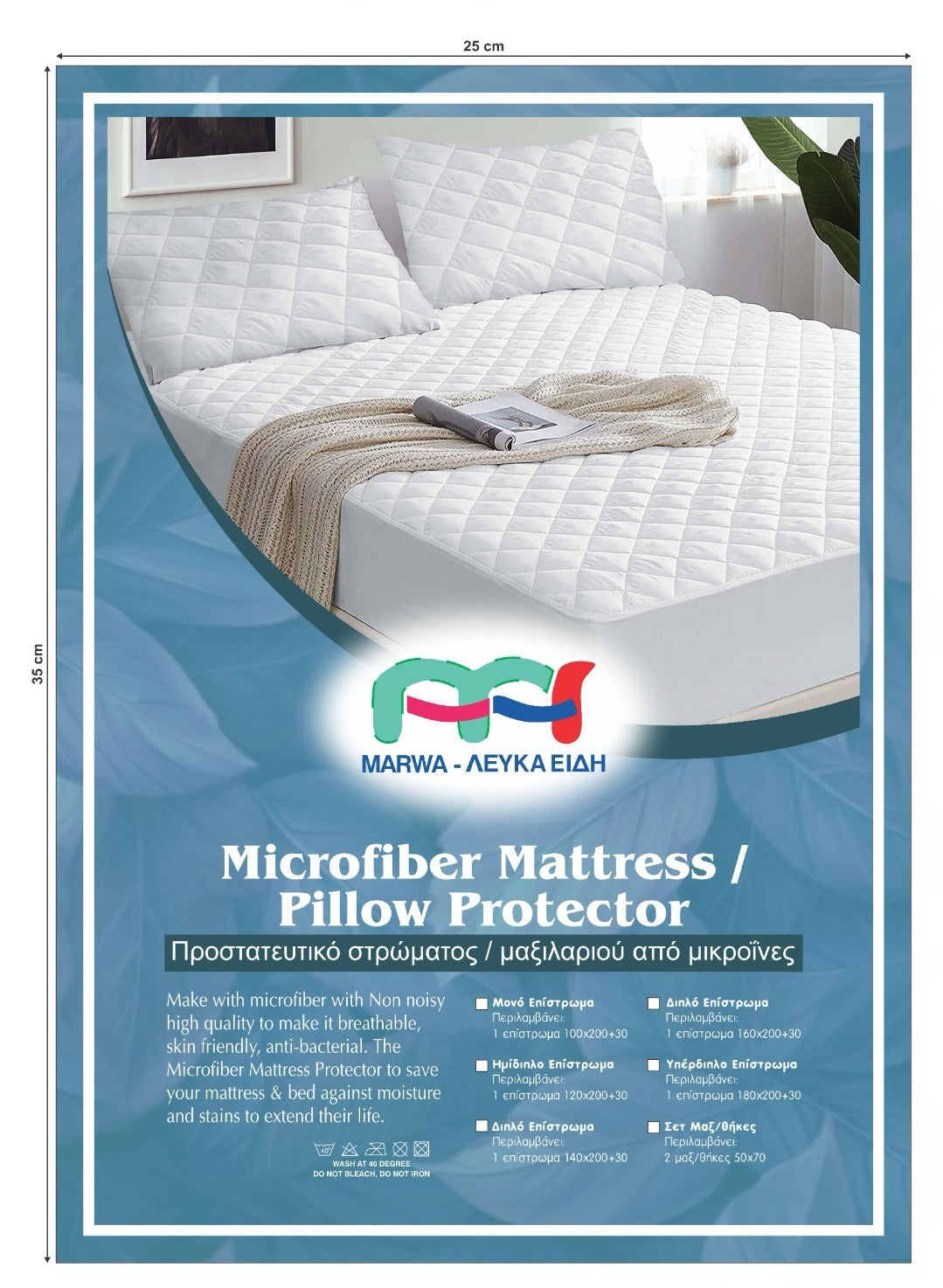 • Διαθέσιμα μεγέθη: Μονό, Διπλό, Υπέρδιπλο
