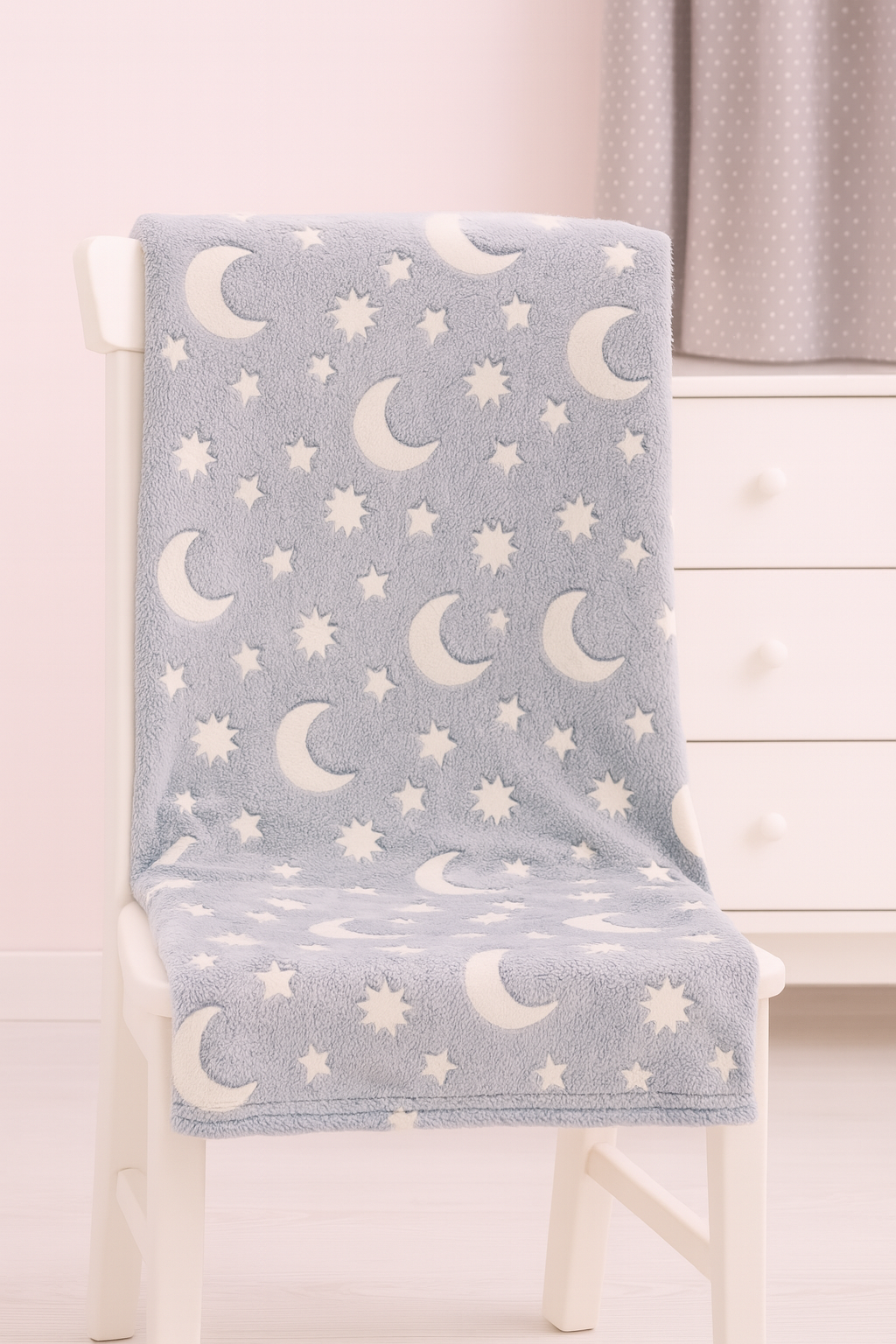 Κουβέρτα παιδική φωσφορίζουσα 150x200 cm από εξαιρετικά απαλή fleece ύφανση, ιδανική για αγόρια και κορίτσια. Φωσφορίζει στο σκοτάδι, δημιουργώντας μαγική ατμόσφαιρα στο παιδικό δωμάτιο και προσφέρει άνεση, ζεστασιά και ασφάλεια στον ύπνο.